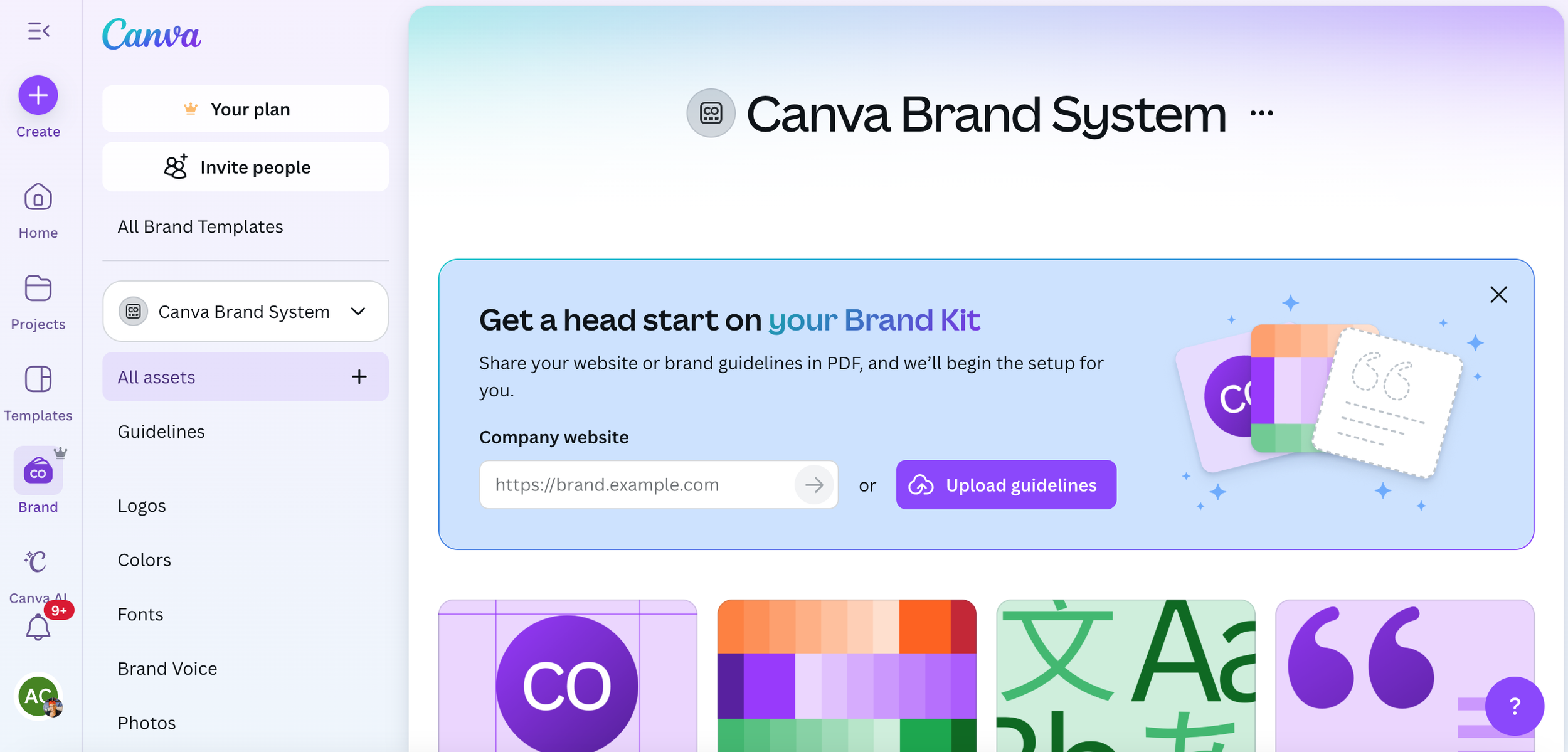 The new Canva Brand System makes setting up your brand kit much faster. You can upload your brand guidelines, and Canva automatically detects and adds your fonts and color palette.