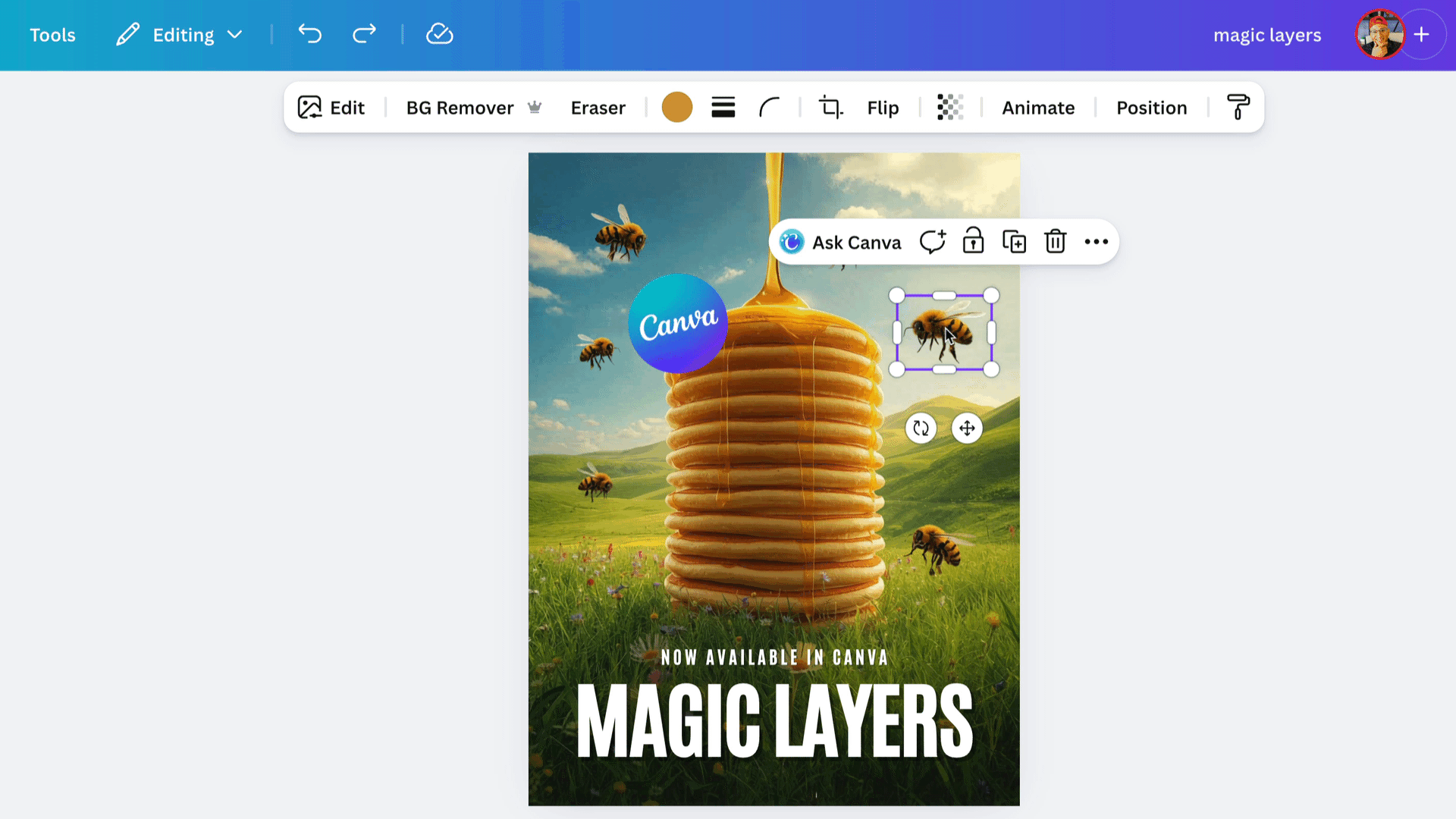Magic Layers is a brand new Canva feature that takes any flat PNG or JPG and separates it into individual editable elements right inside the Canva editor.
